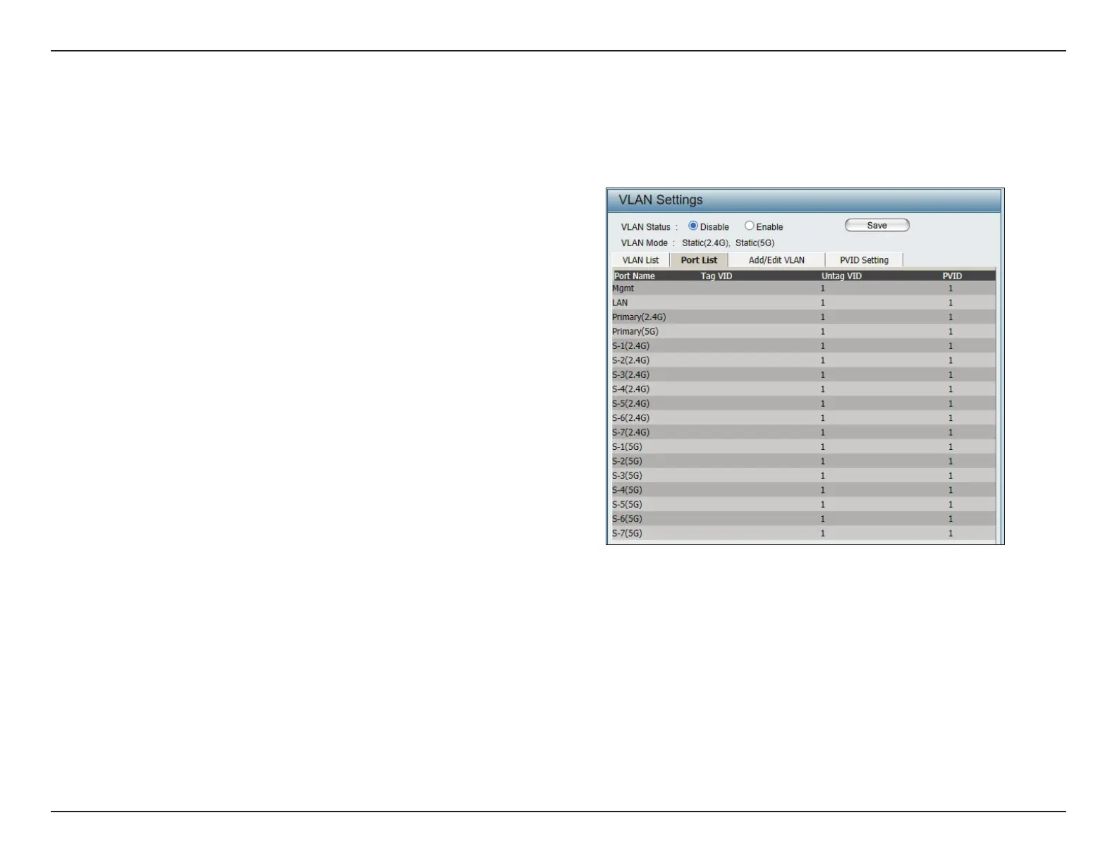 VLAN Status: