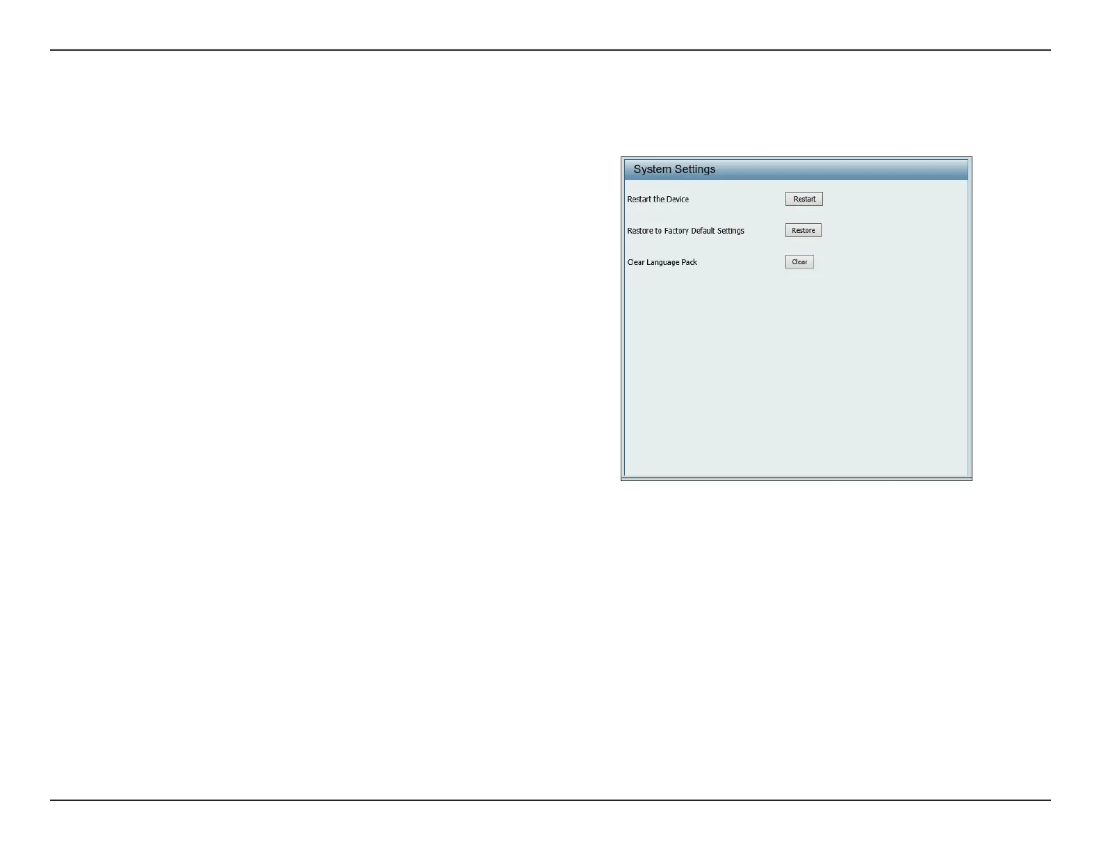 On this page the user can restart the unit, perform a factory reset of the access point or clear the added language pack.
