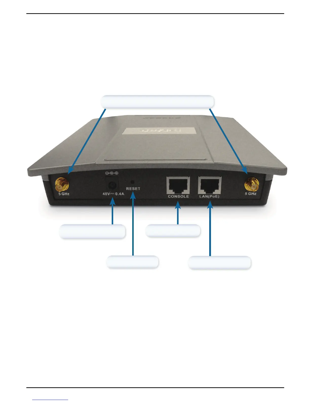 * 2.4GHz antenna connectors are located on the bottom of the access point.