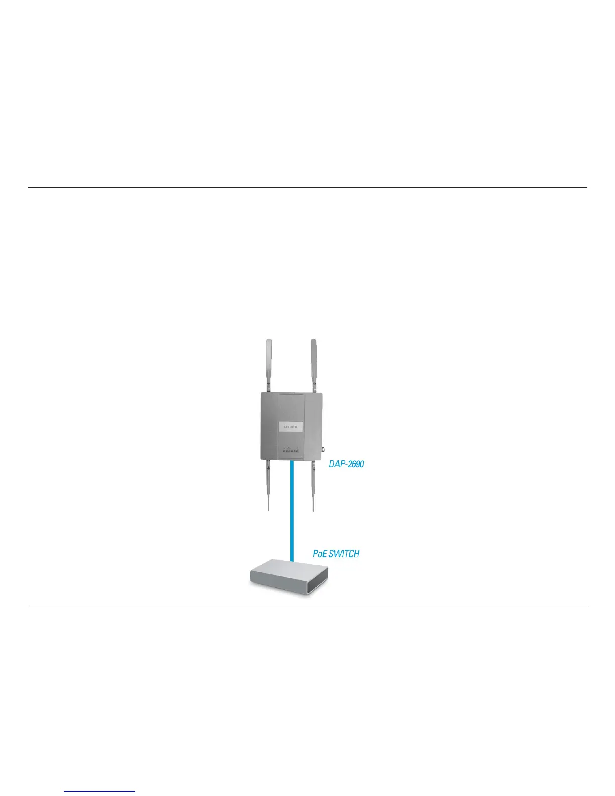 1. Connect one end of your Ethernet cable into the LAN (PoE) port on the DAP-2690 and then connect the other end to your PoE switch.