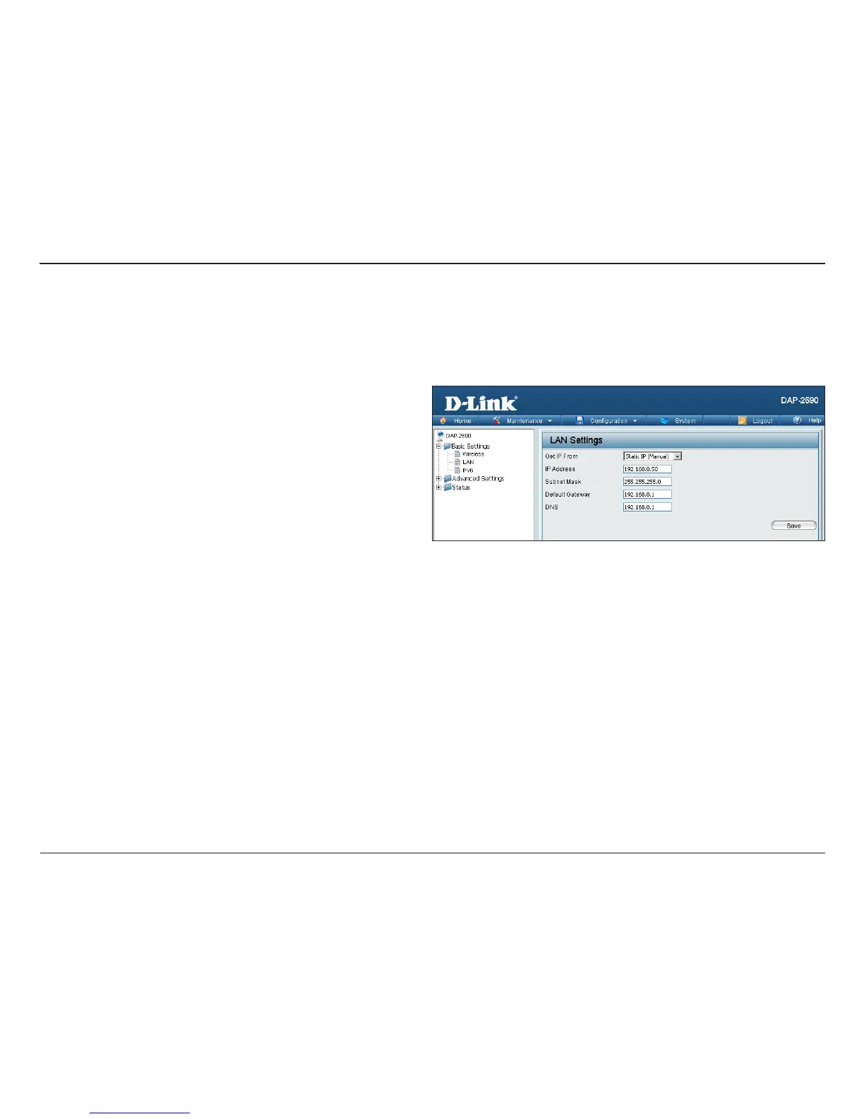 and cannot be seen on the Internet. After completing the desired LAN settings, click the Save button to let your changes take eect.