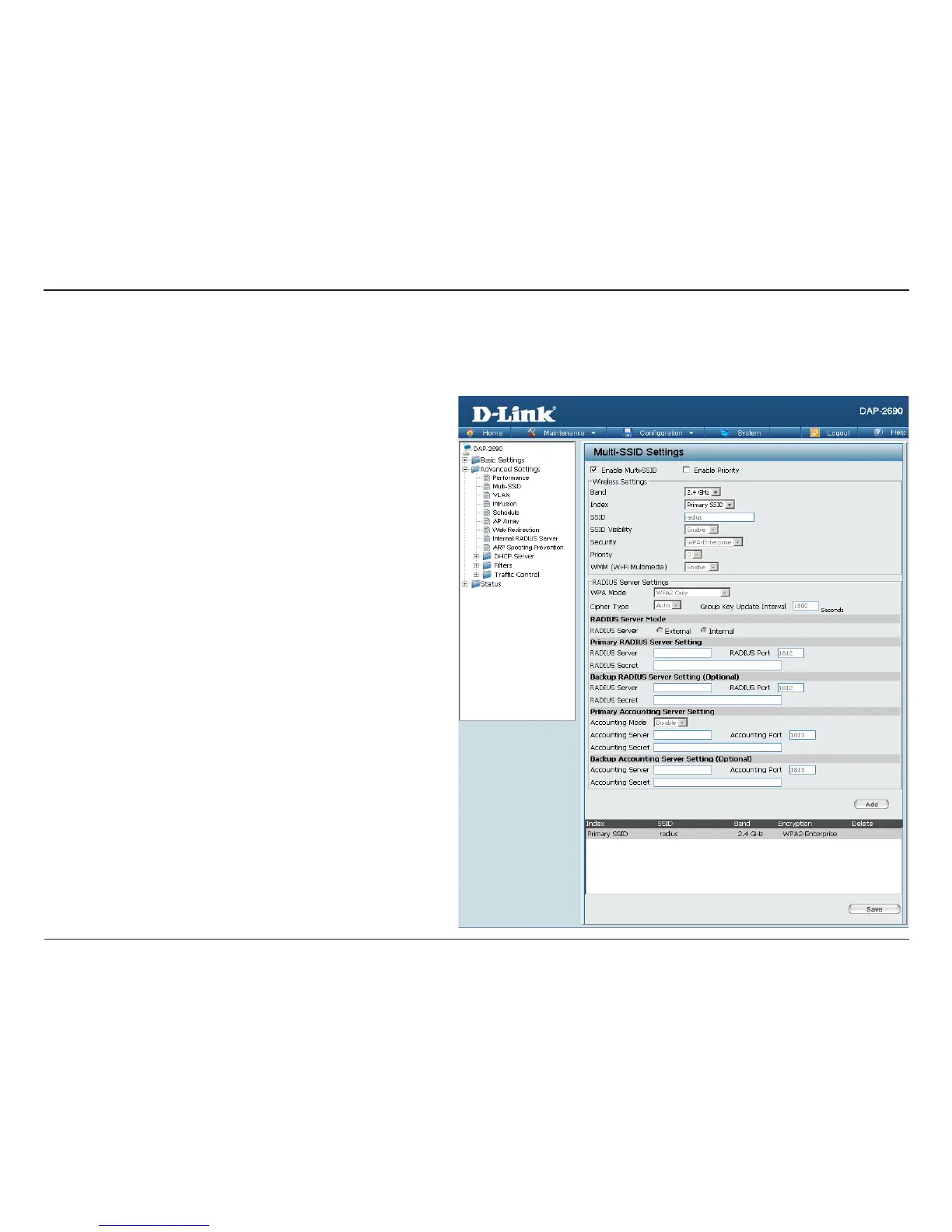 the information for the new SSID is nished, click the Add button. Click the Save button to let your changes take eect.