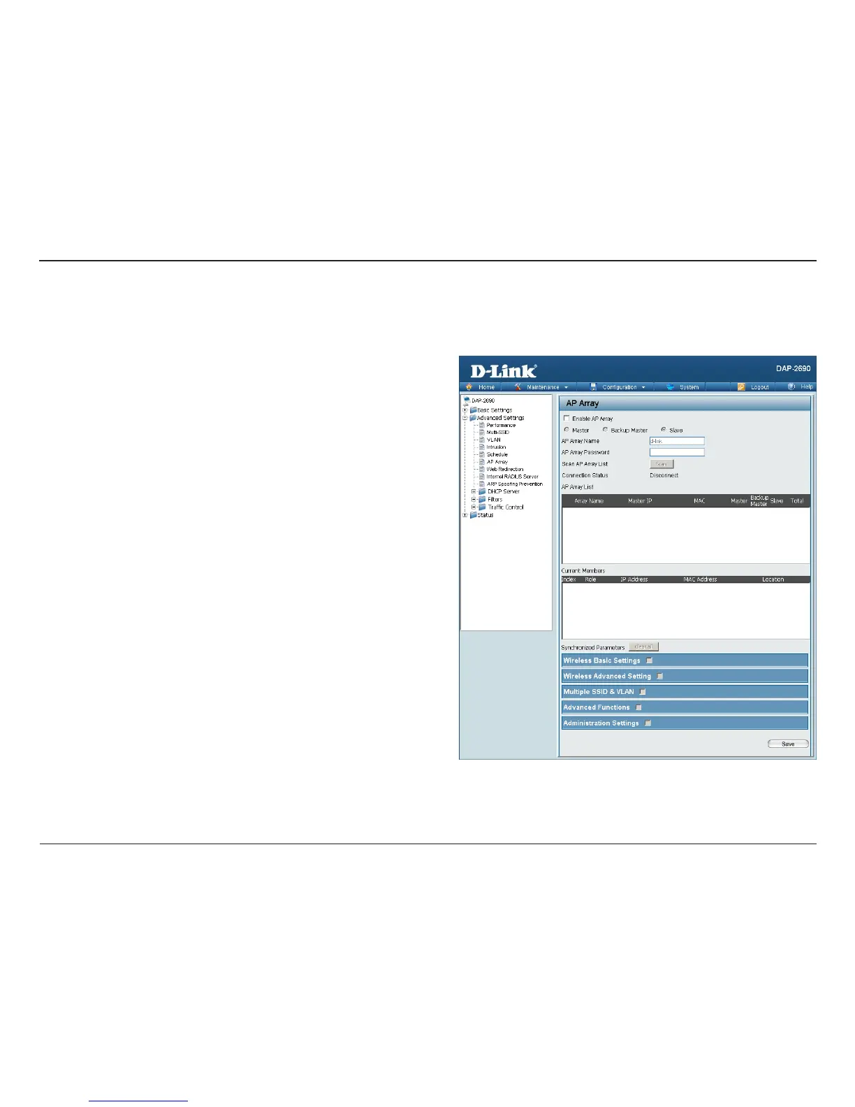 The AP Array window allows users to create a set of devices on a network that are organized into a single group in order to increase ease of