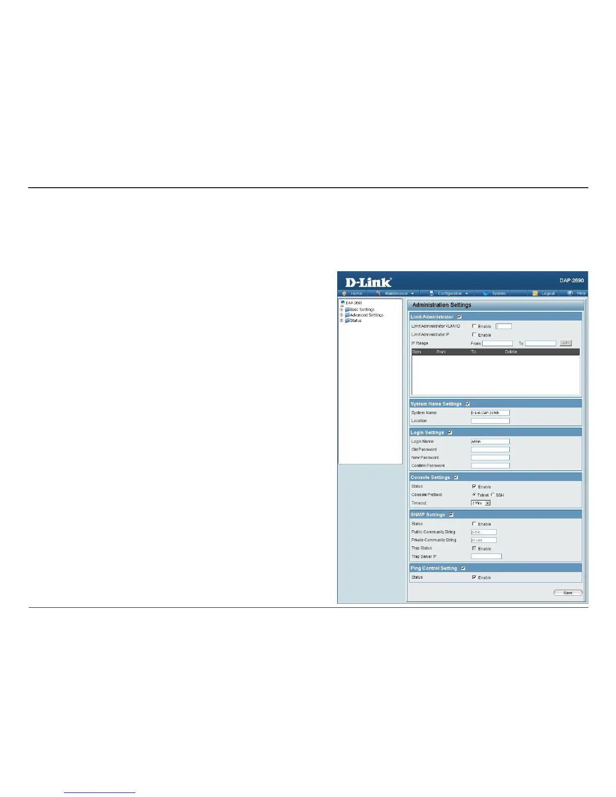 Check one or more of the six main categories to display the various hidden administrator parameters and settings displayed on the next six