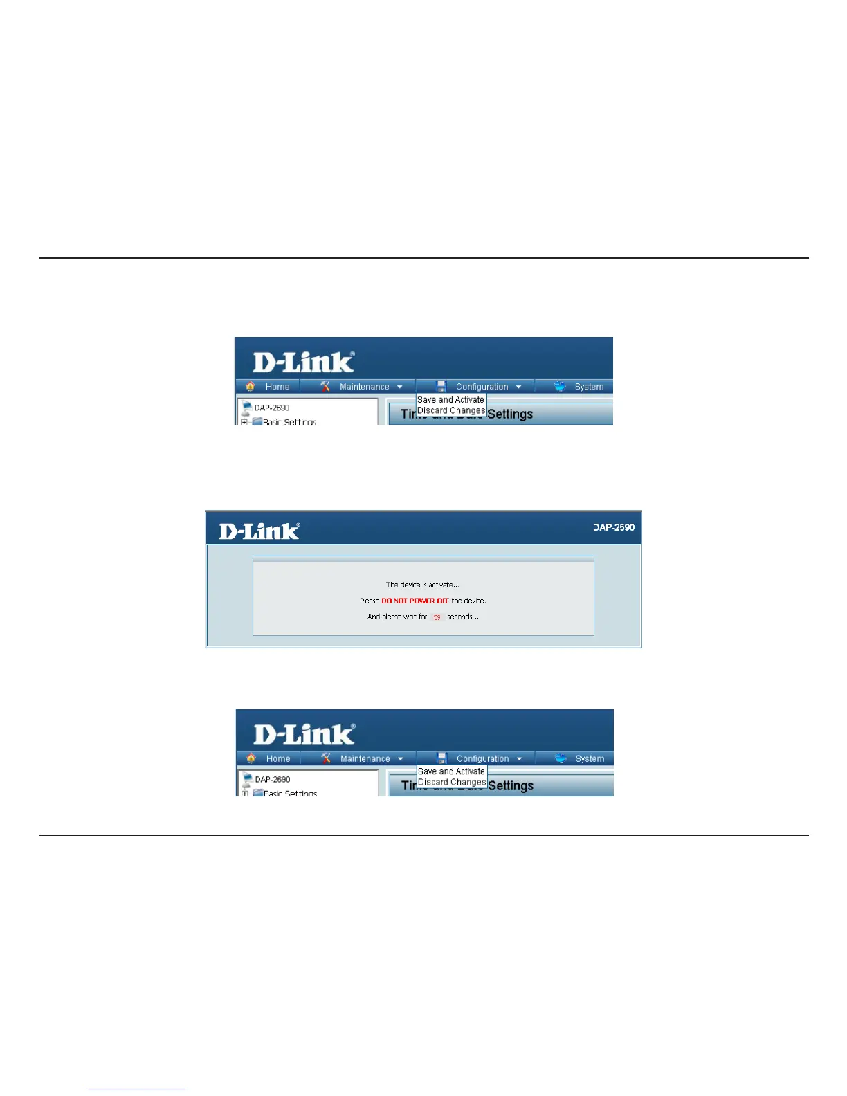 The drop-down Conguration menu allows users to save the current changes and reboot the DAP-2690 by clicking "Save and Activate".