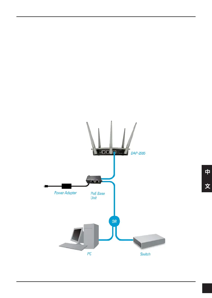 3. 請將電源供應器的一端連接至PoE連接器的Power In,另一端連接至