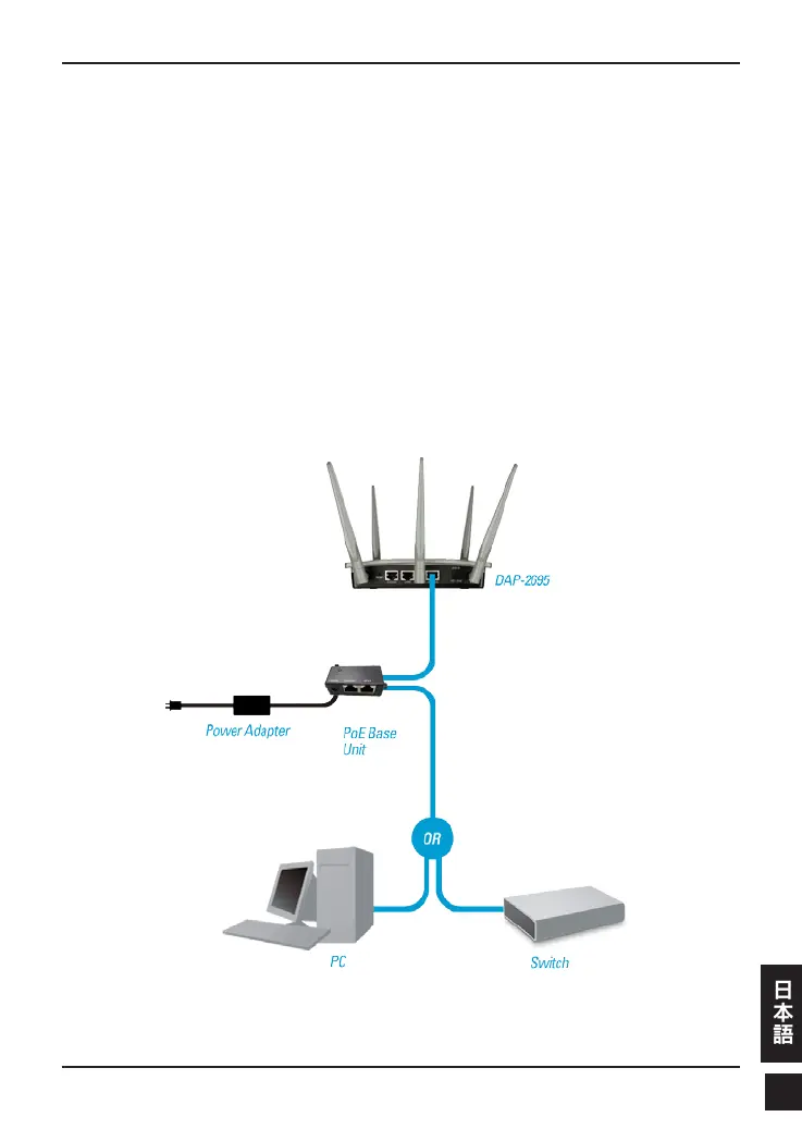 ートに接続し、他端をDAP-2695のLAN1(PoE)ポートに接続します。