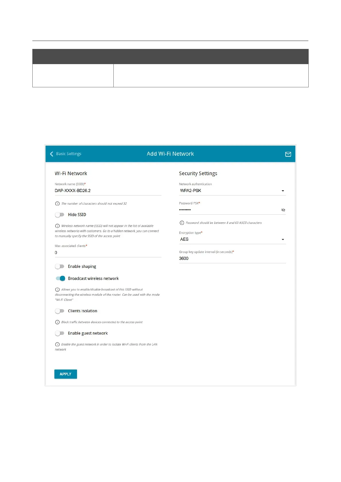 Also you can create an additional wireless network. To do this, click the ADD WI-FI NETWORK