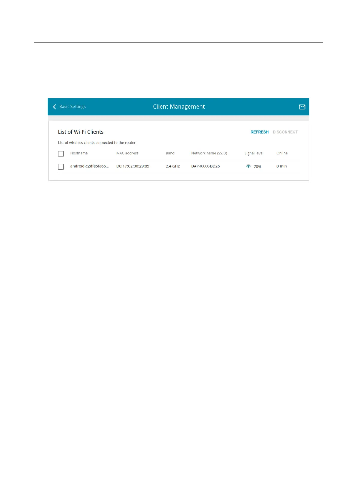 To view the latest data on the devices connected to the WLAN, click the REFRESH button.