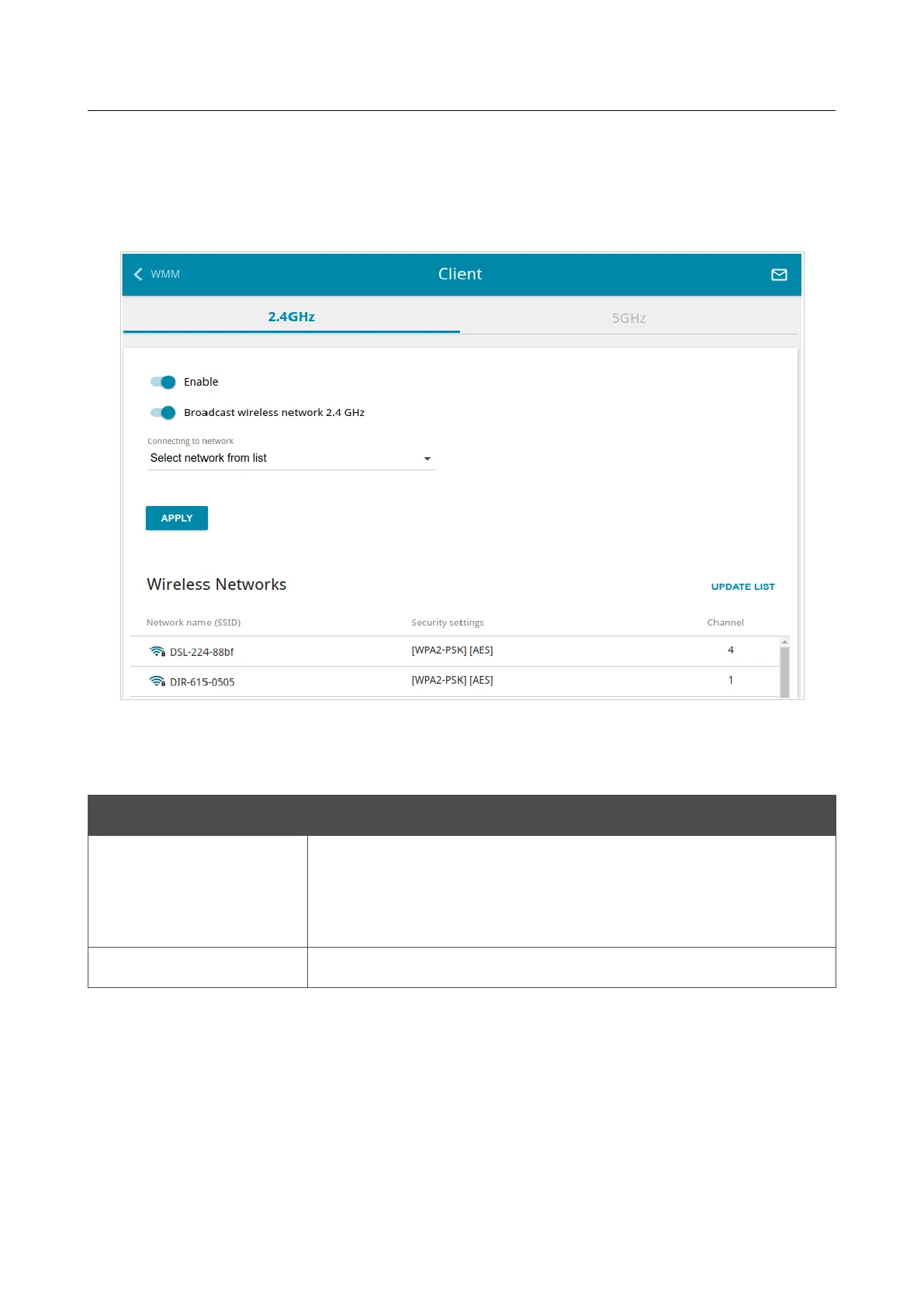 On the Wi-Fi / Client page, you can configure the device as a client to connect to a wireless access