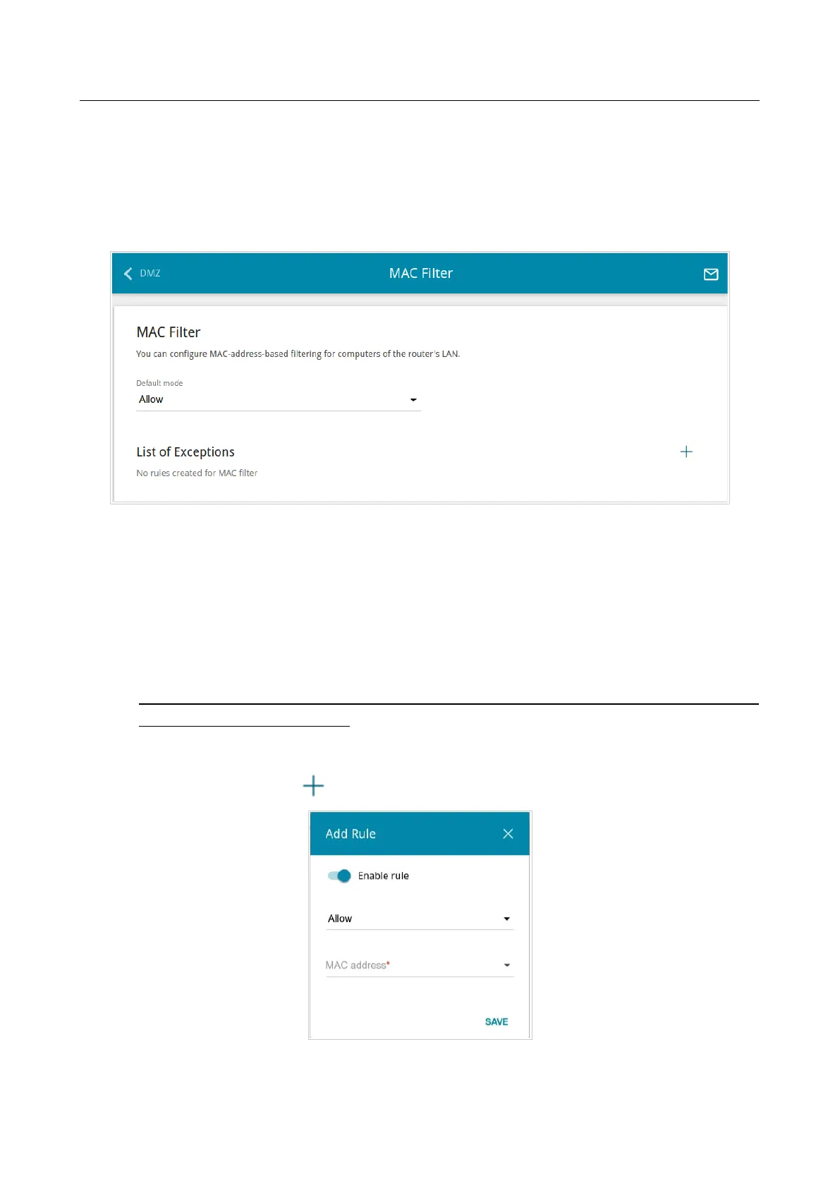 To create a rule (specify a MAC address of a device for which a special filtering mode will be