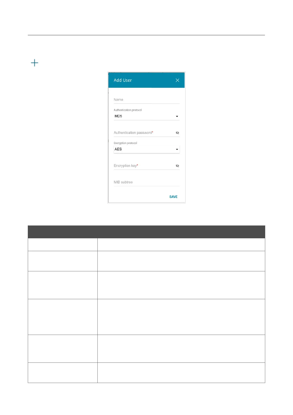 agent and SNMP manager. The field is displayed if the DES or AES