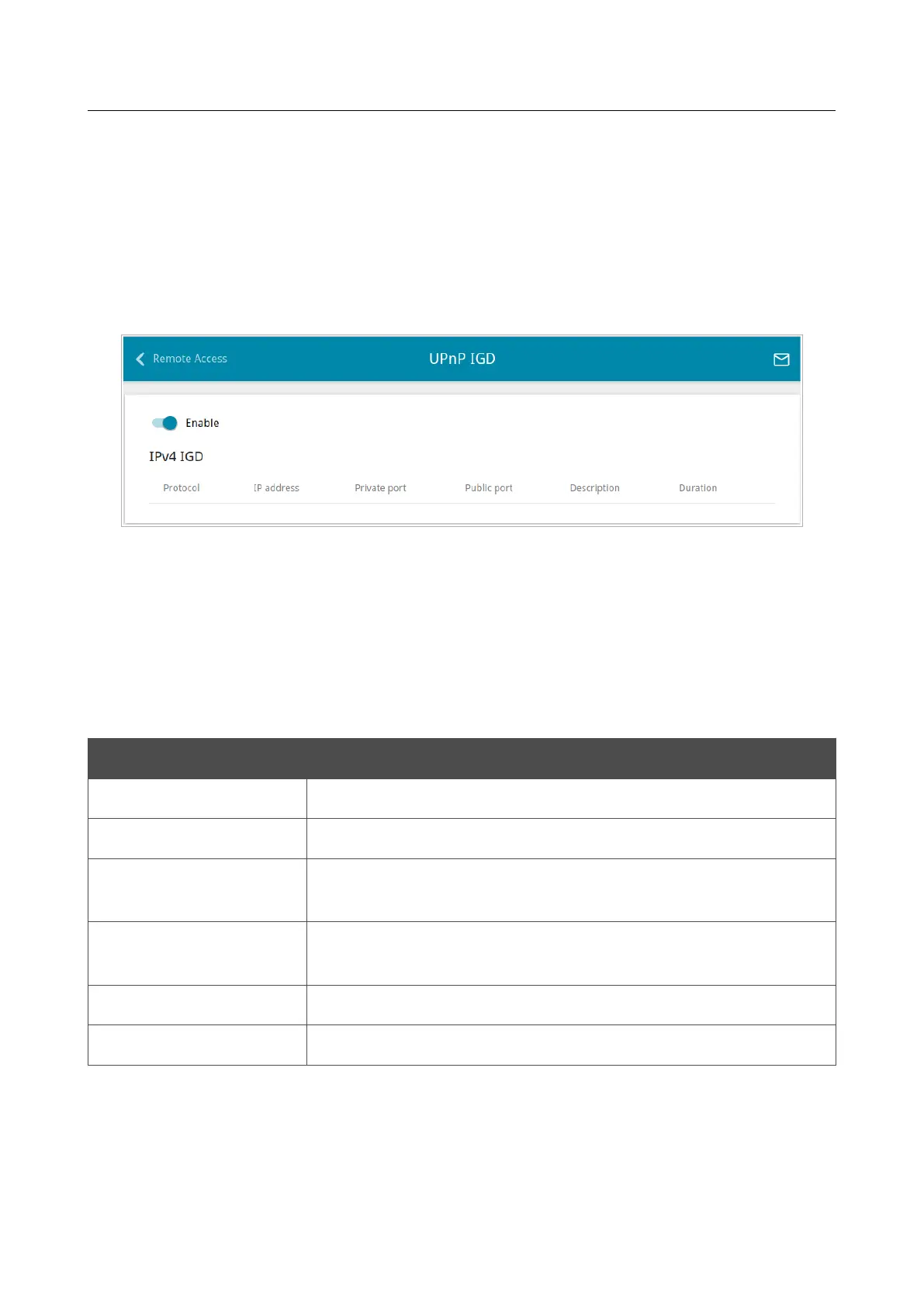 If you want to enable the UPnP IGD protocol in the access point, move the Enable switch to the