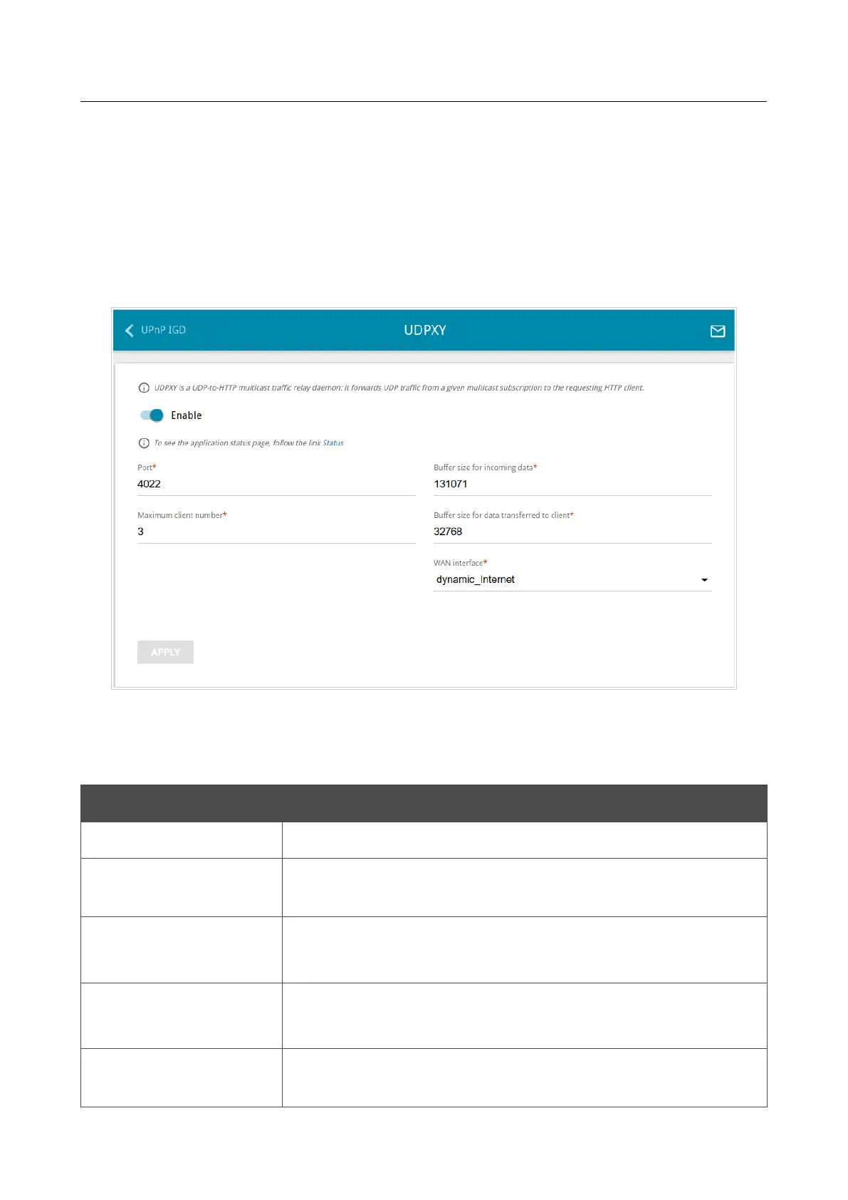 On the Advanced / UDPXY page, you can allow the access point to use the built-in UDPXY