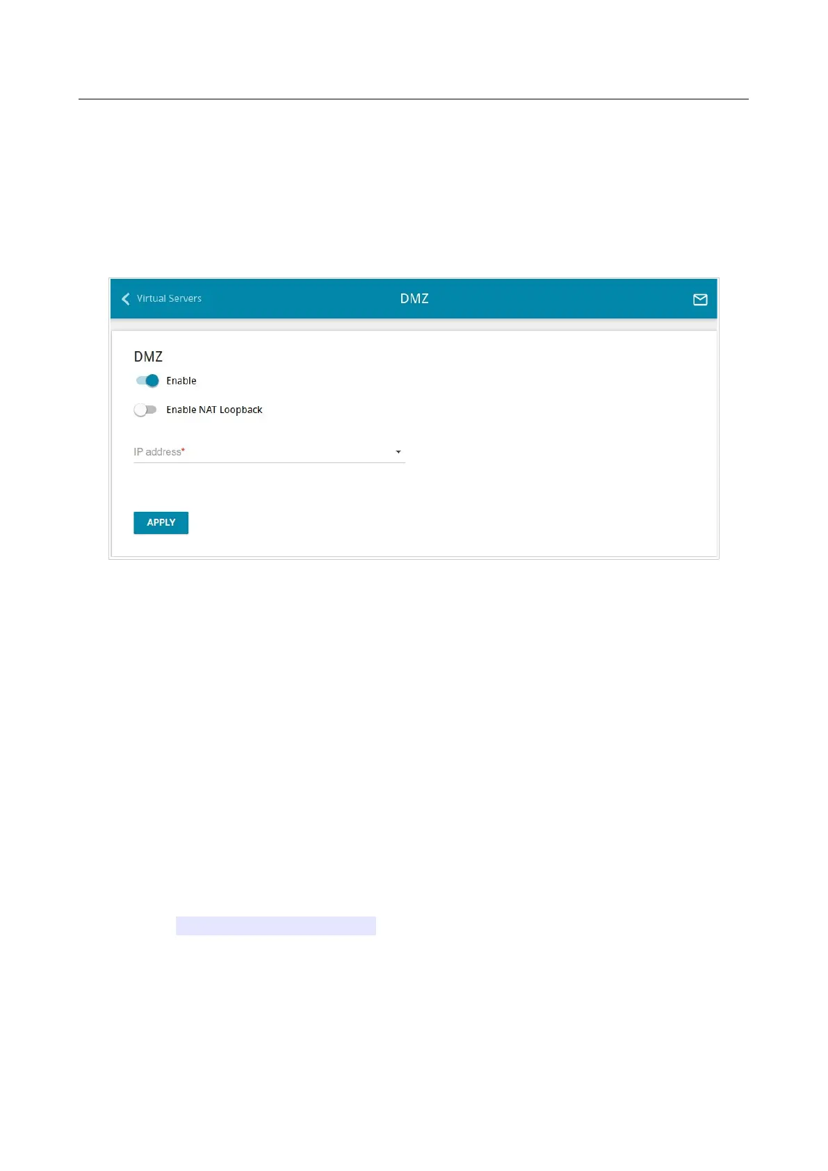 To disable the DMZ, move the Enable switch to the left and click the APPLY button.