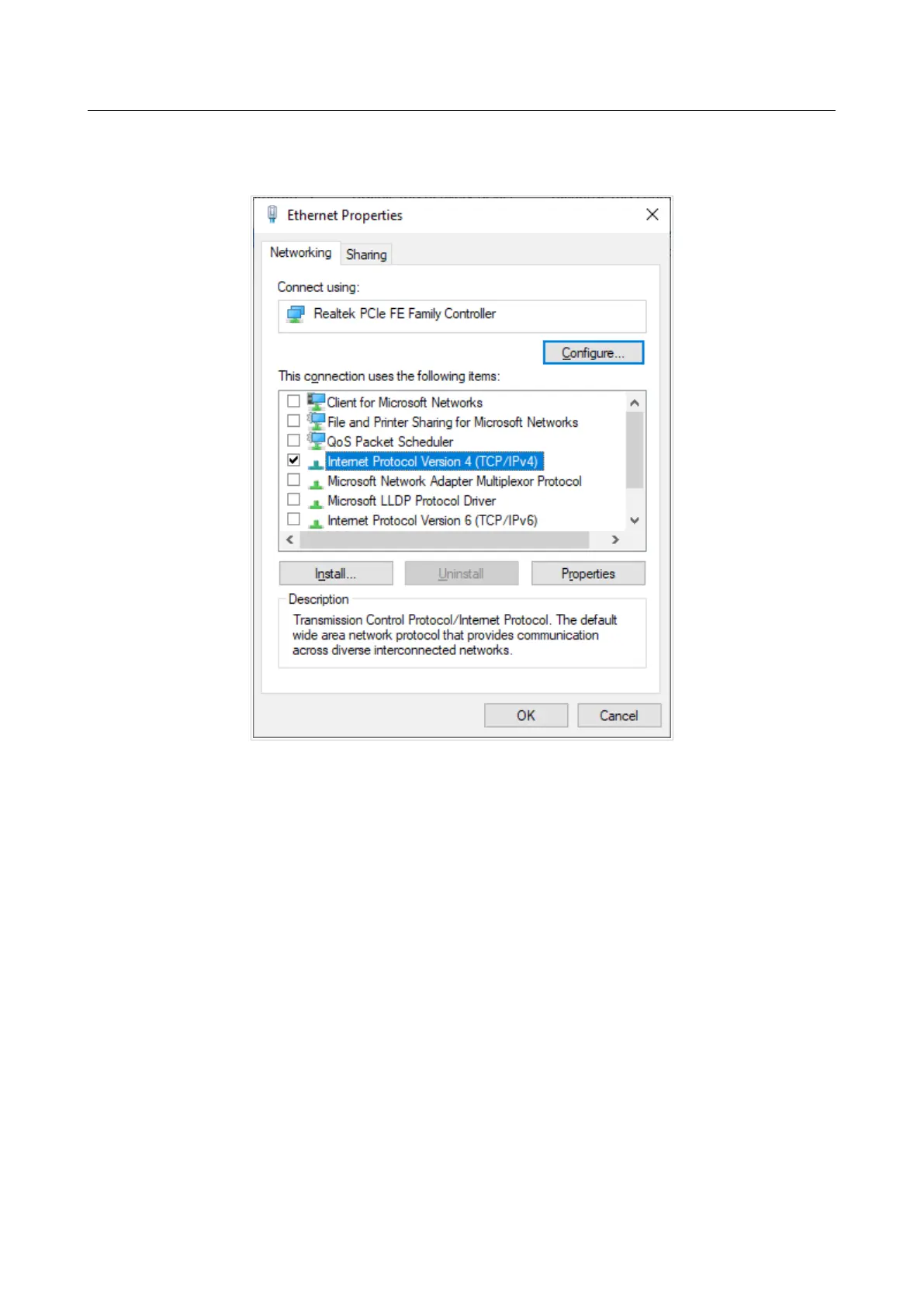 Internet Protocol Version 4 (TCP/IPv4) line. Click the Properties button.