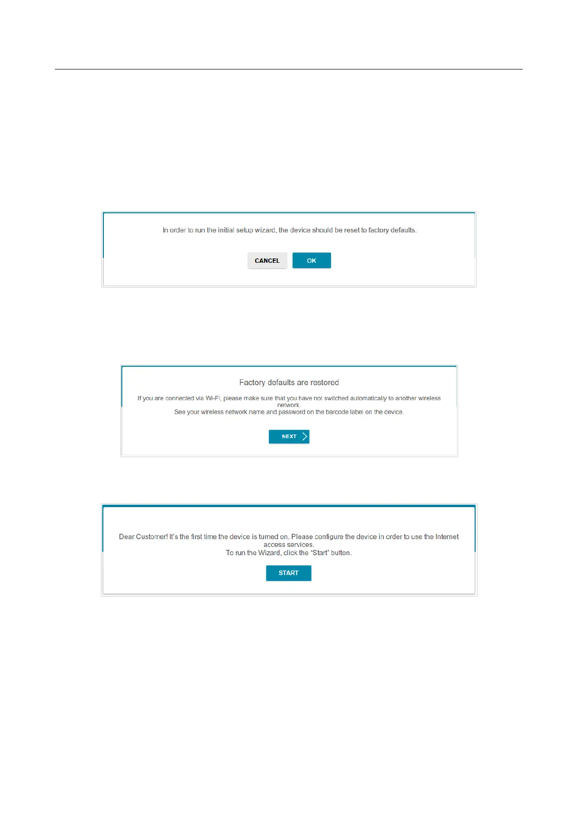 page, click the OK button and wait until the factory default settings are restored.