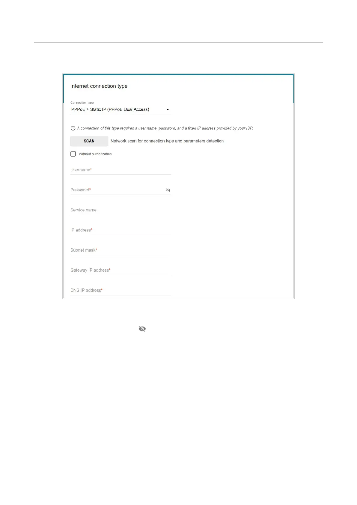 your ISP. Click the Show icon ( ) to display the entered password. If authorization is not
