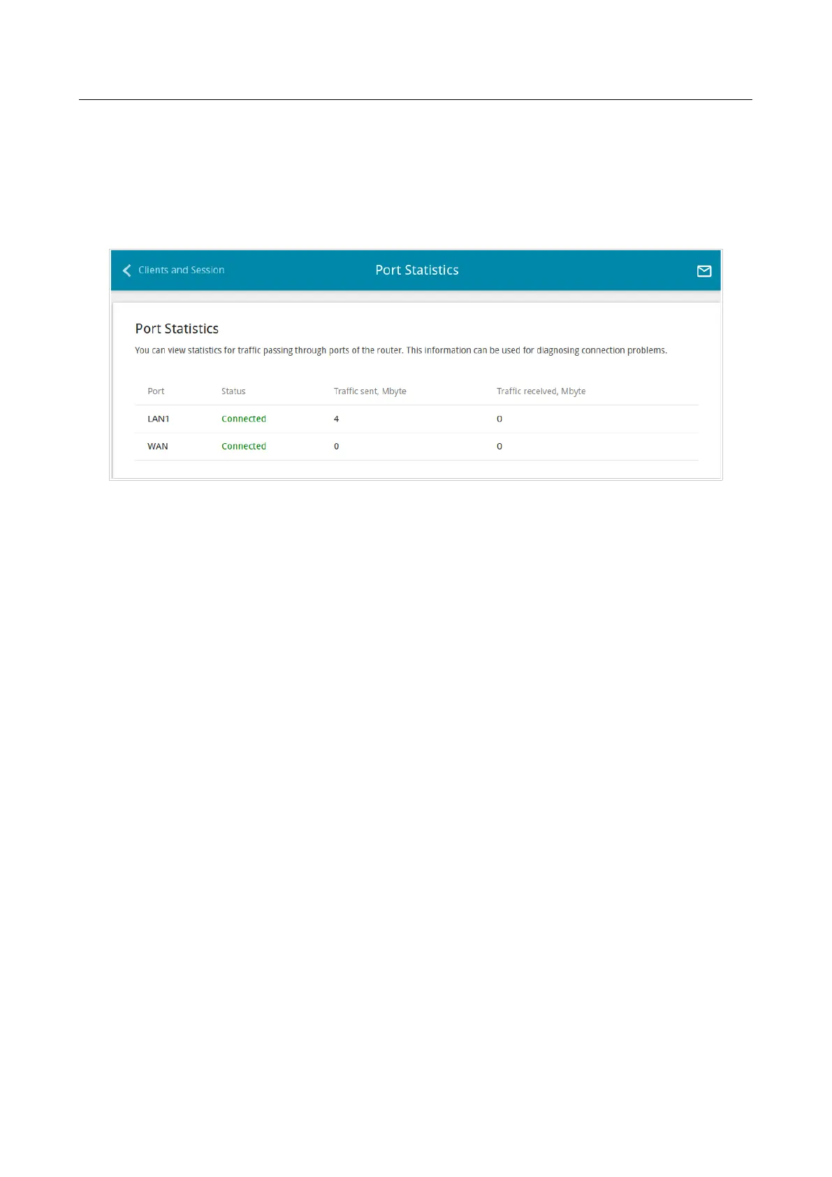 On the Statistics / Port Statistics page, you can view statistics for traffic passing through ports