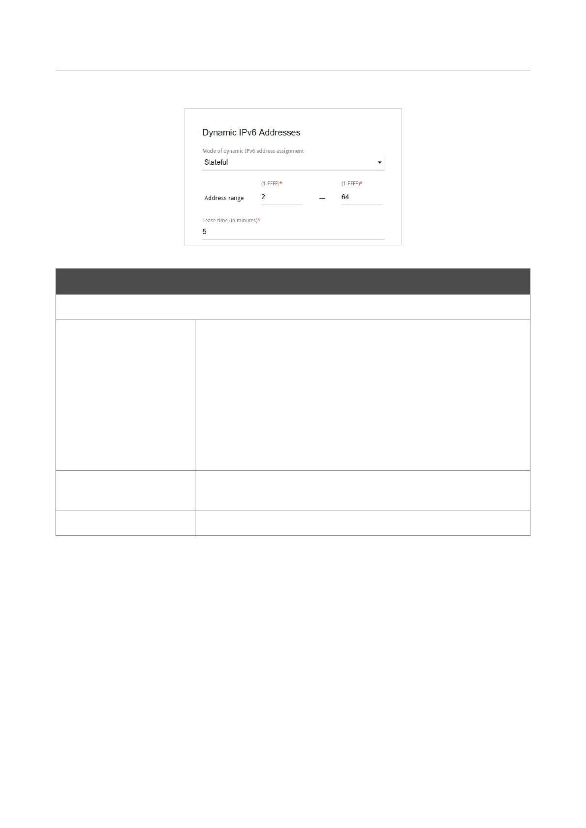 Lease time The lifetime of IPv6 addresses provided to clients.