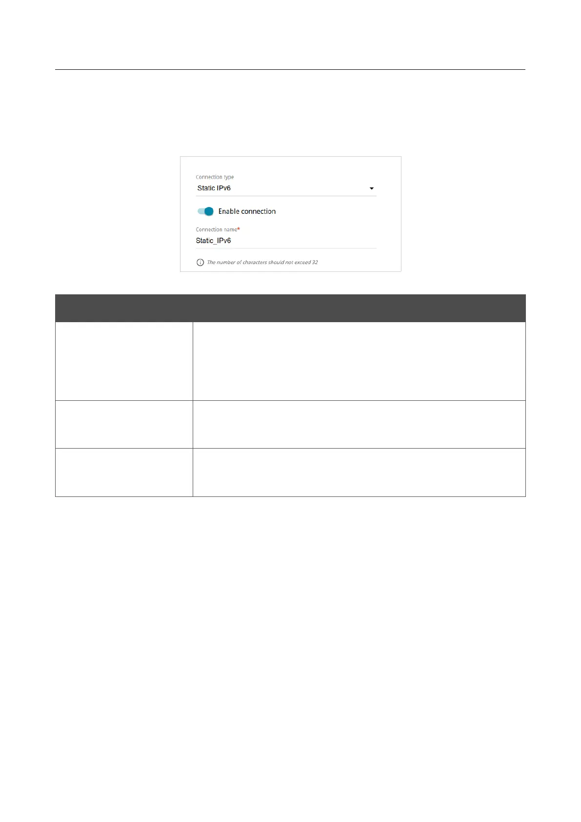 Figure 81. The page for creating a new Static IPv6 connection. Selecting a connection type.