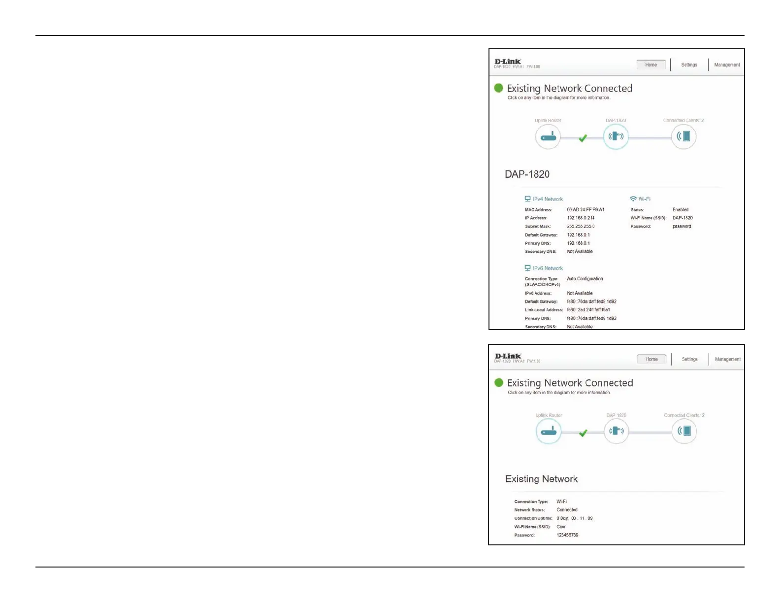 Network, the IPv6 Network and the Wi-Fi network by clicking on the DAP-X1860