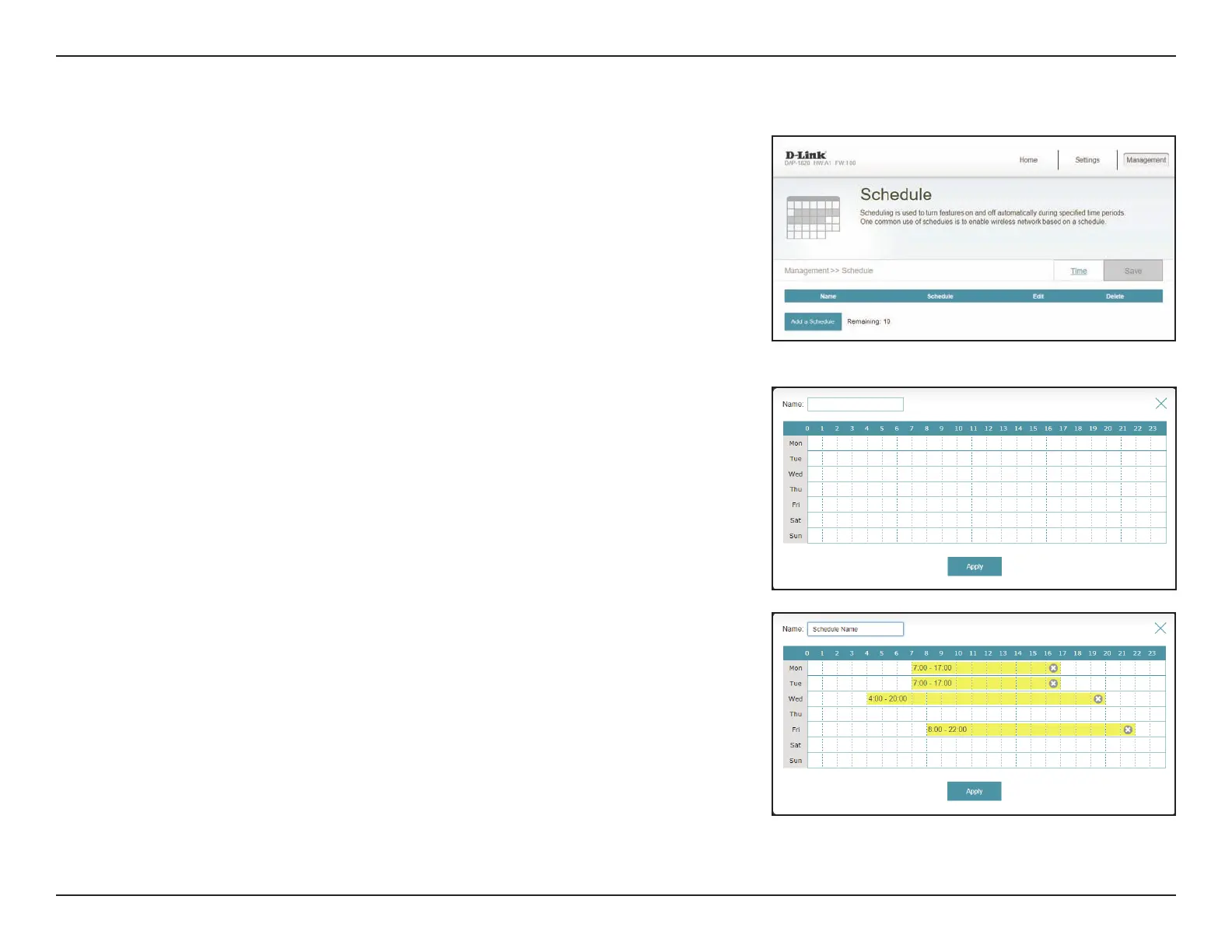 Some router functions can be controlled through a pre-congured schedule. To