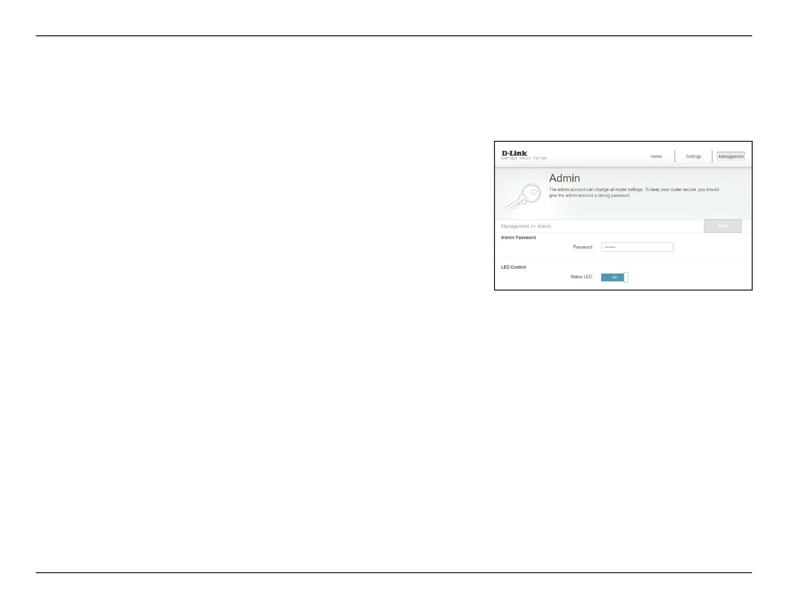 This page will allow you to set a new password for the administrator account used to configure the DAP-X1870. To access this