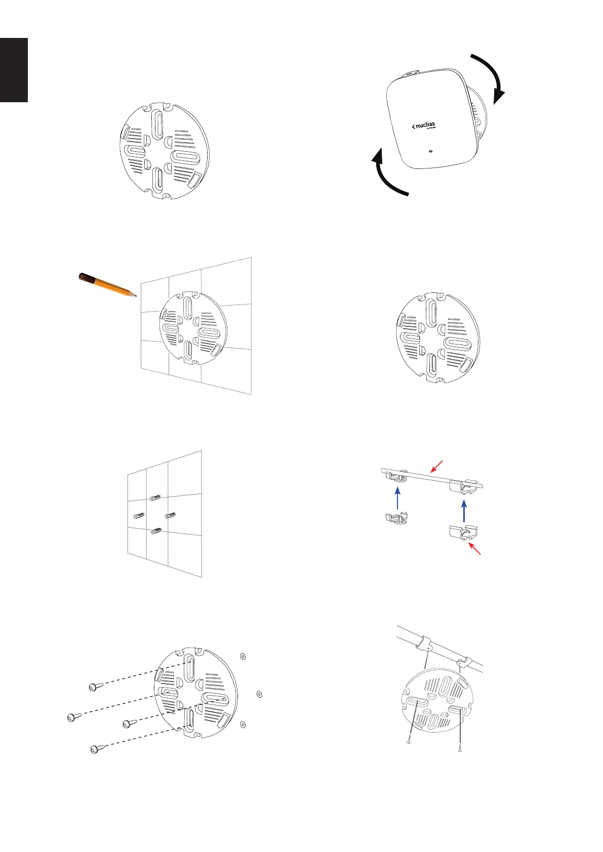 3. Drill holes on the markings and place the included