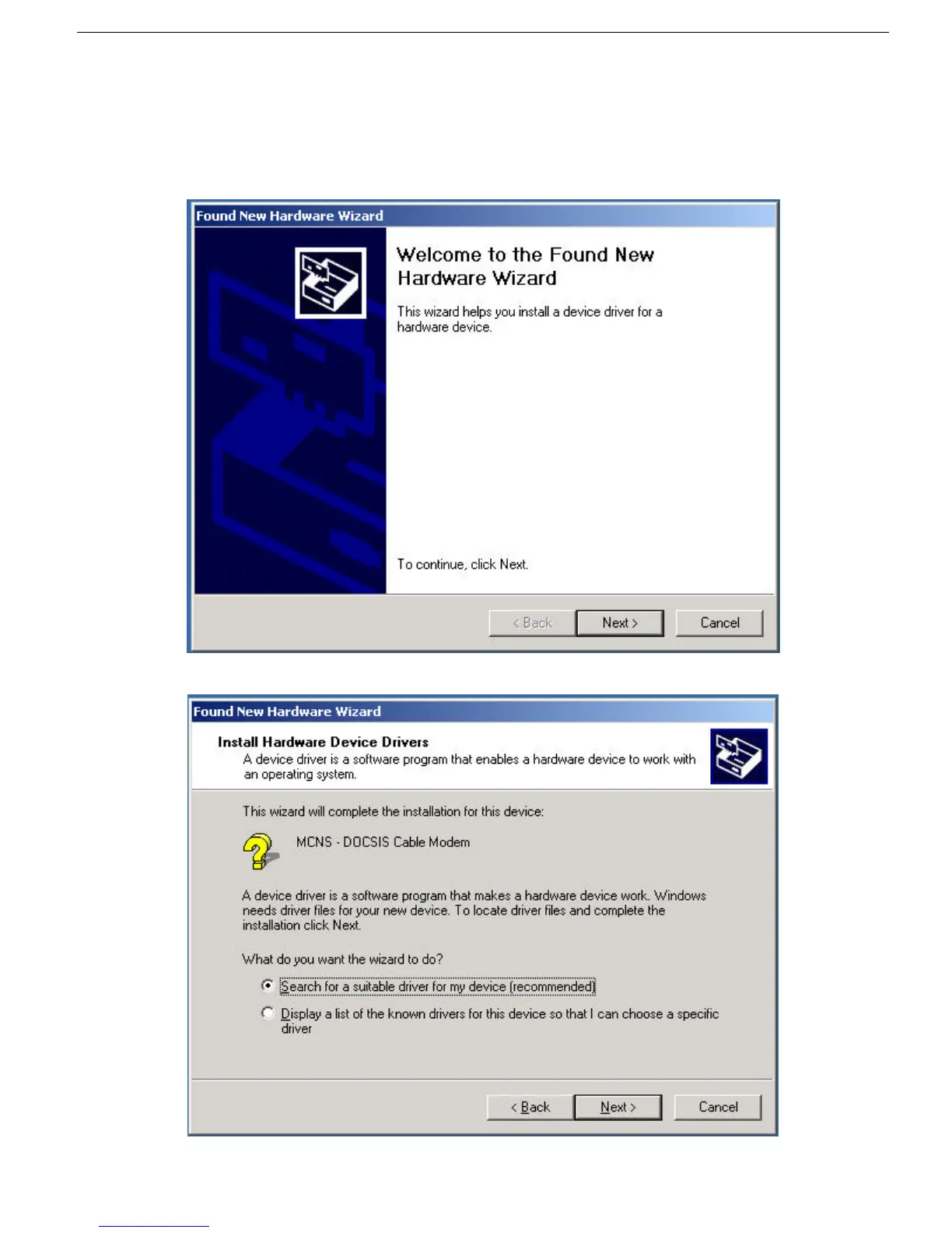 displayed below. Follow the steps described below to add the driver for the USB/Ethernet Cable Modem.
