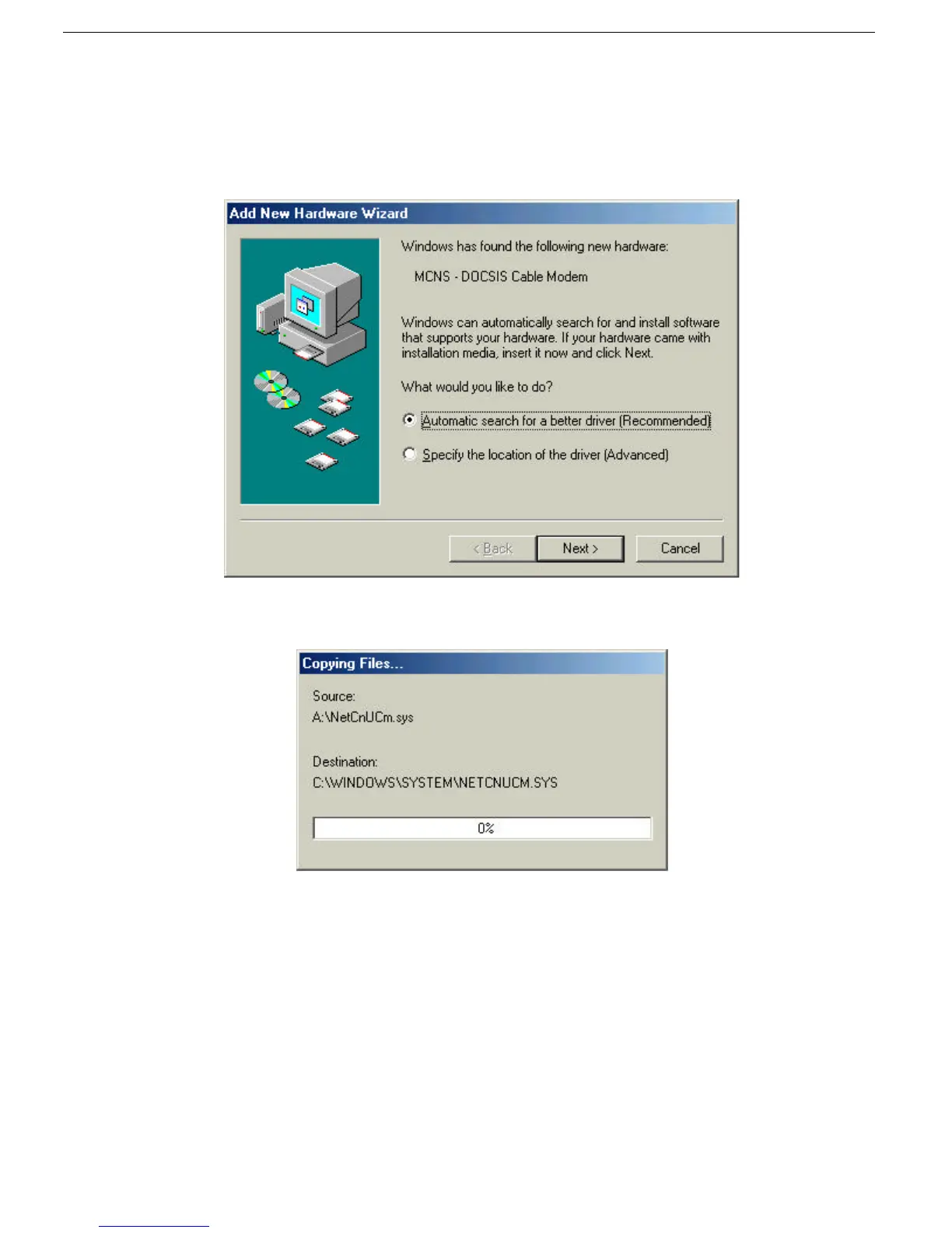 displayed below. Follow the steps described below to add the driver for the USB/Ethernet Cable Modem.