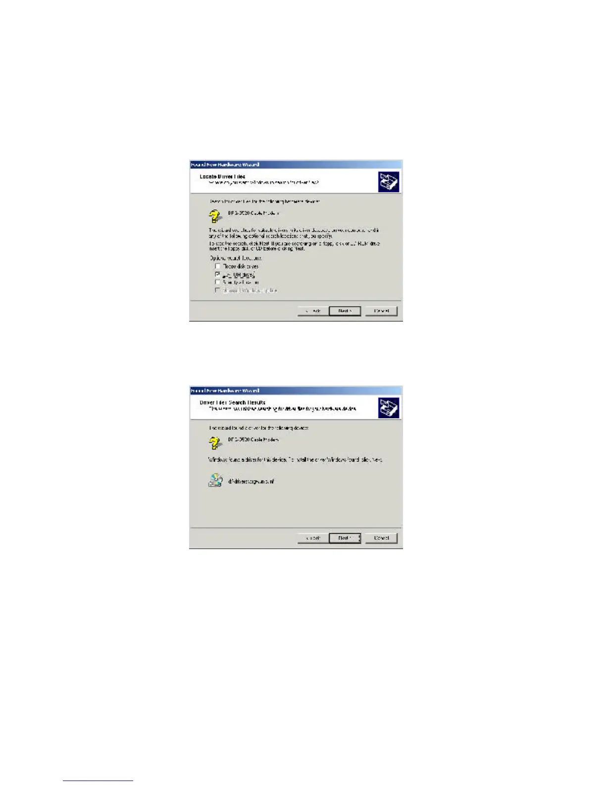 7 Click Next to install the driver files for the cable modem.