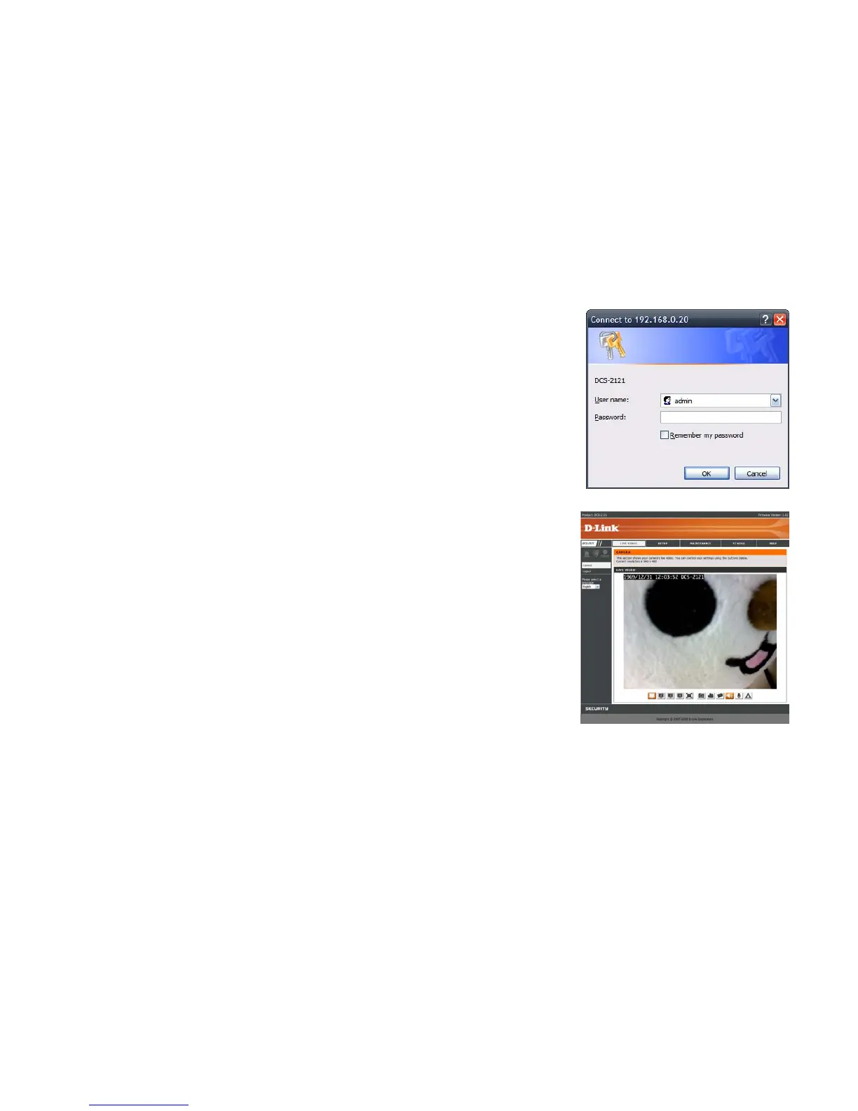 the DCS-2121 and prompt you for a user name and password. Enter “admin” into the User name field, and then click