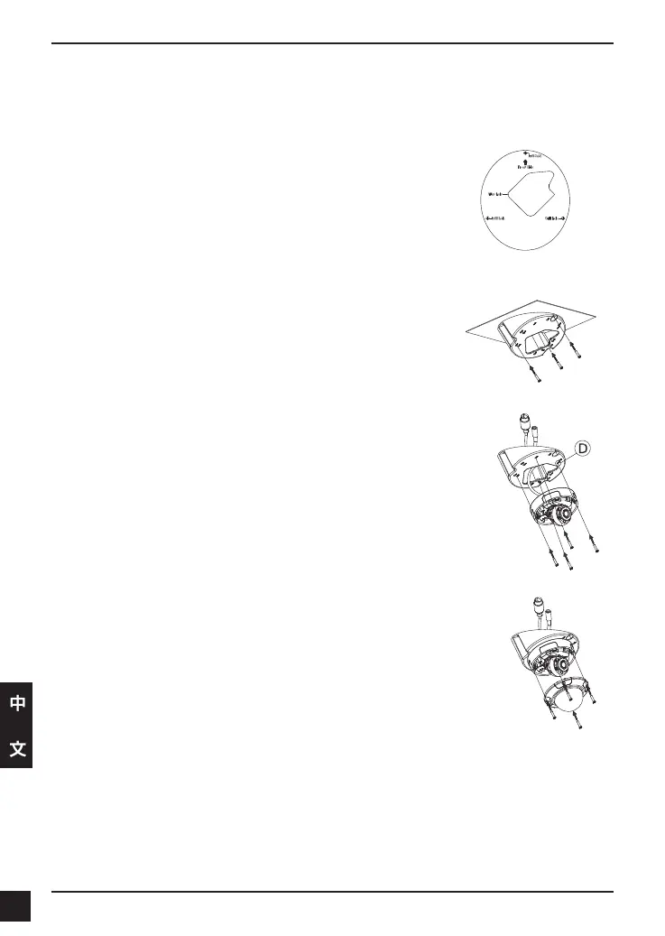 螺絲對準標示為D的孔位來將攝影機鎖上。