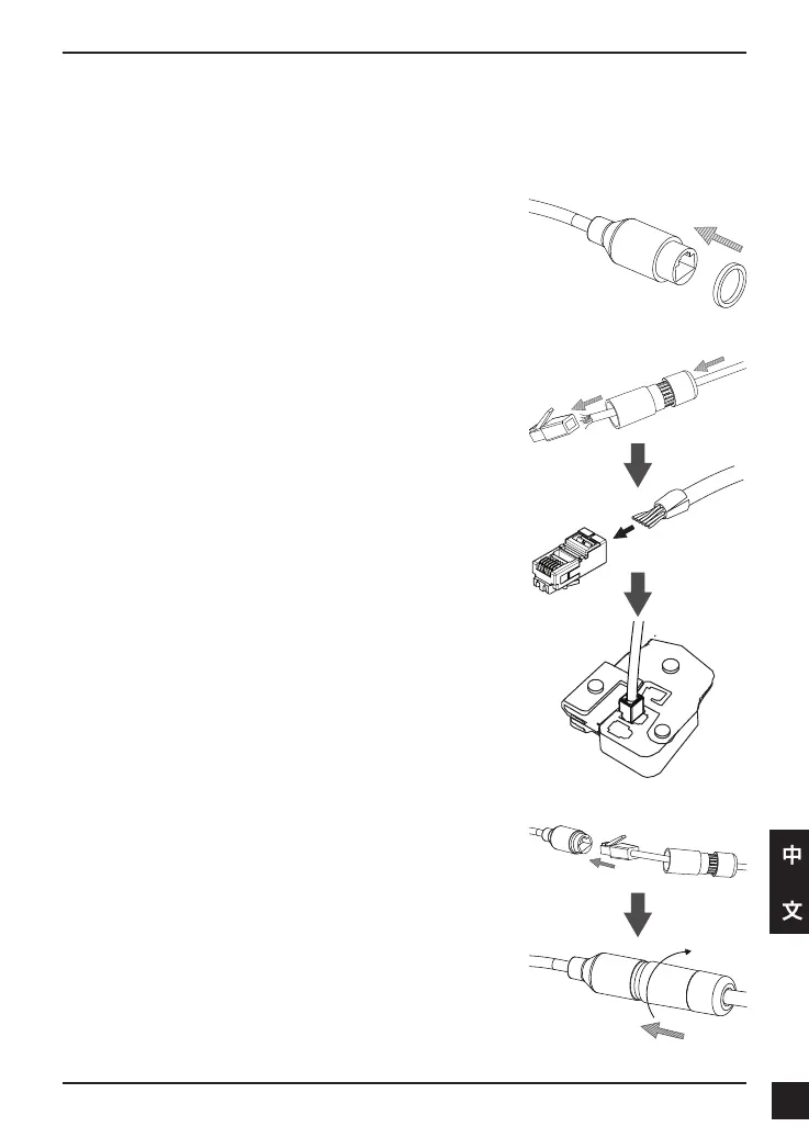 請依圖示將網路線穿過防水接頭。