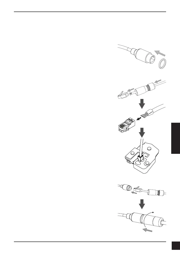 Вставьте кабель в коннектор RJ-45 и обожмите.