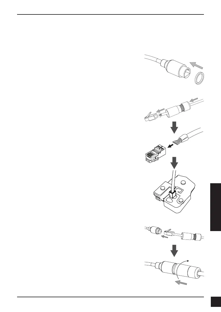 Coloque o cabo Ethernet através do conector impermeável,