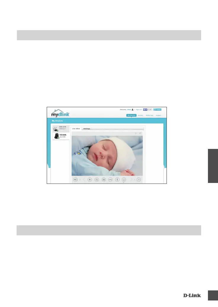 etäkäyttää kameraa www.mydlink.com-sivustolta. Kirjauduttuasi mydlink-tilille näet seuraavan kaltaisen