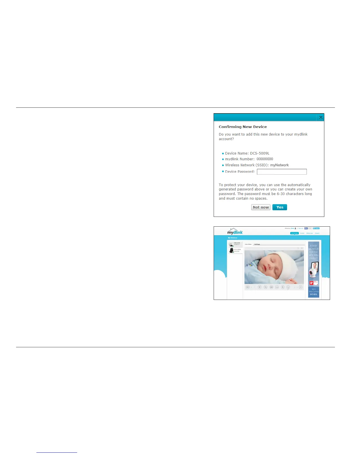 Next you will see the mydlink Live View* for your camera. The screen will look