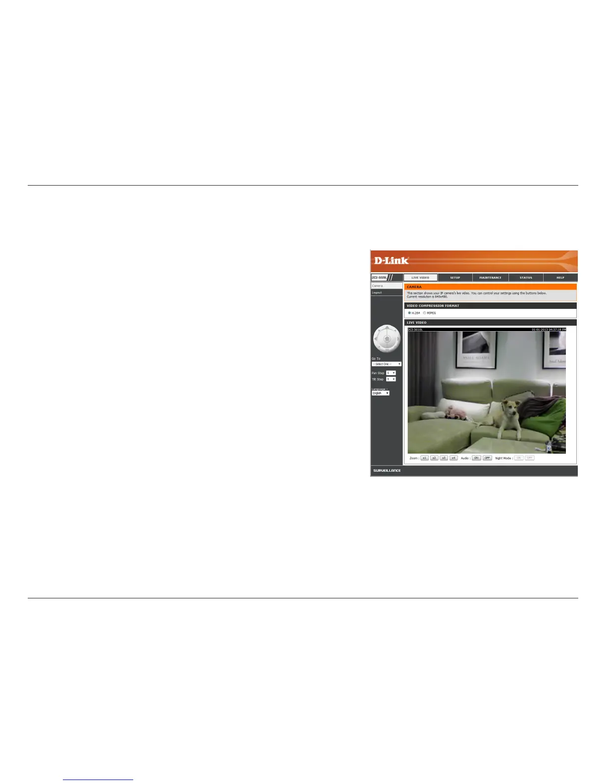 The Live Video screen displays the live video feed from your camera. For information on how to congure your Live Video streams, refer to “Video”