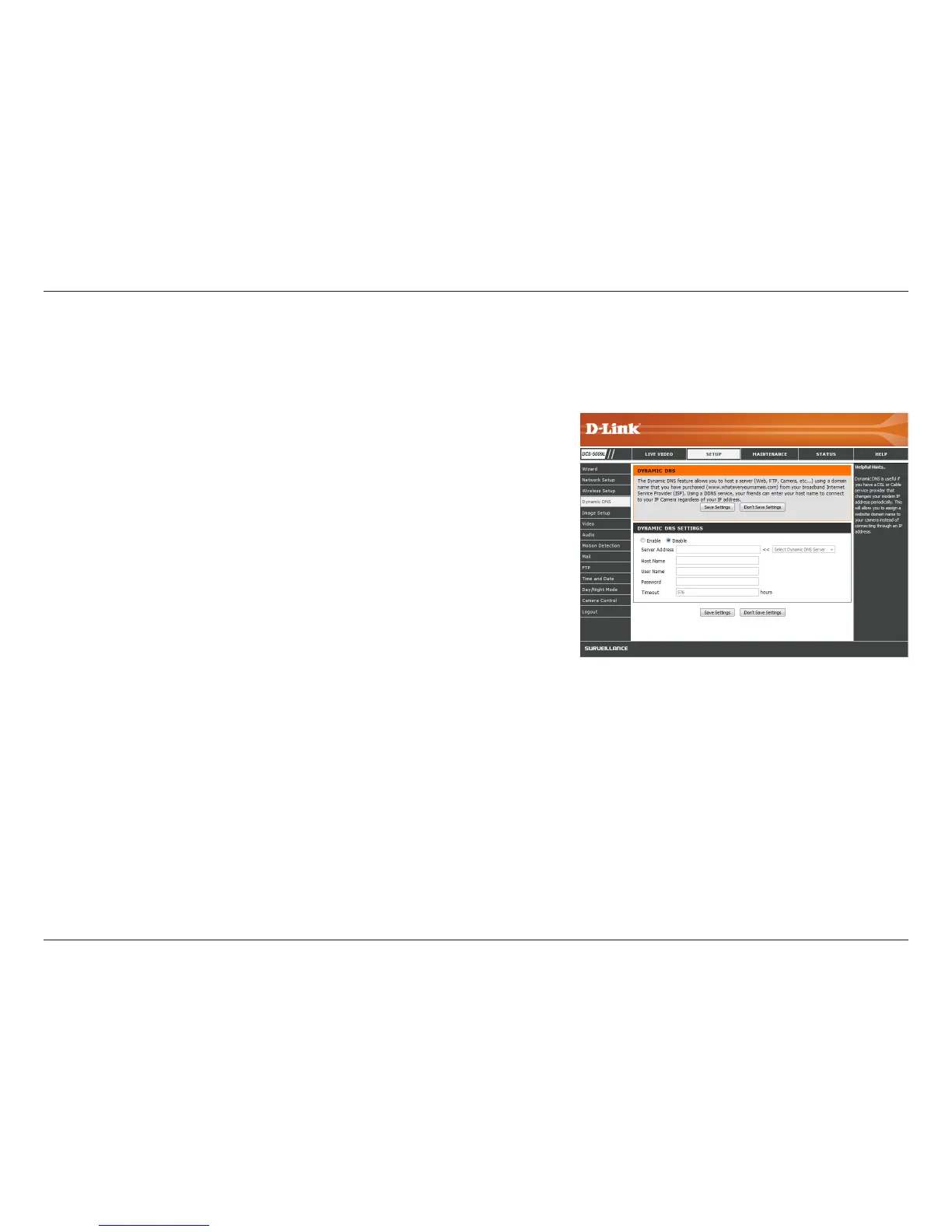 This section allows you to congure the DDNS (Dynamic Domain Name System) settings for your camera. DDNS will allow users to access your