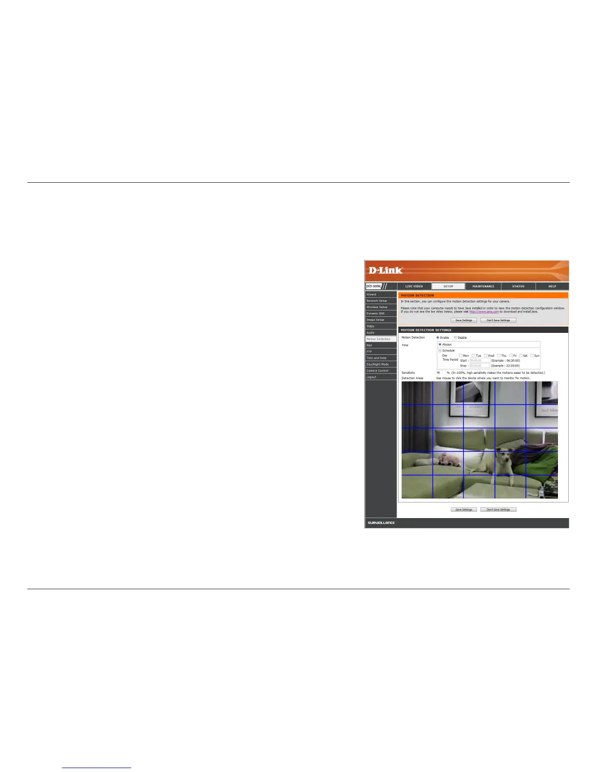 Motion detection allows you to dene specic areas that will be monitored for motion by your camera. These settings will be used to trigger