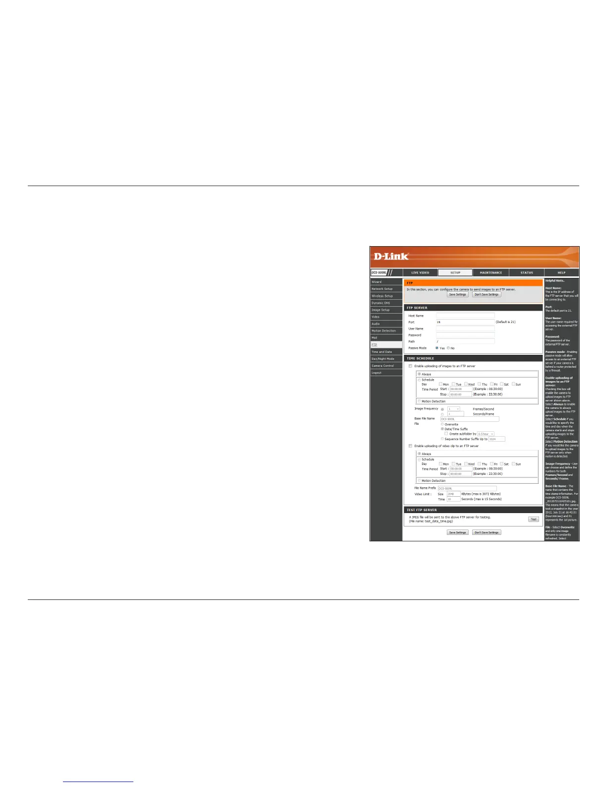 This section allows you to congure your camera to send snapshots and video clips to an FTP server.
