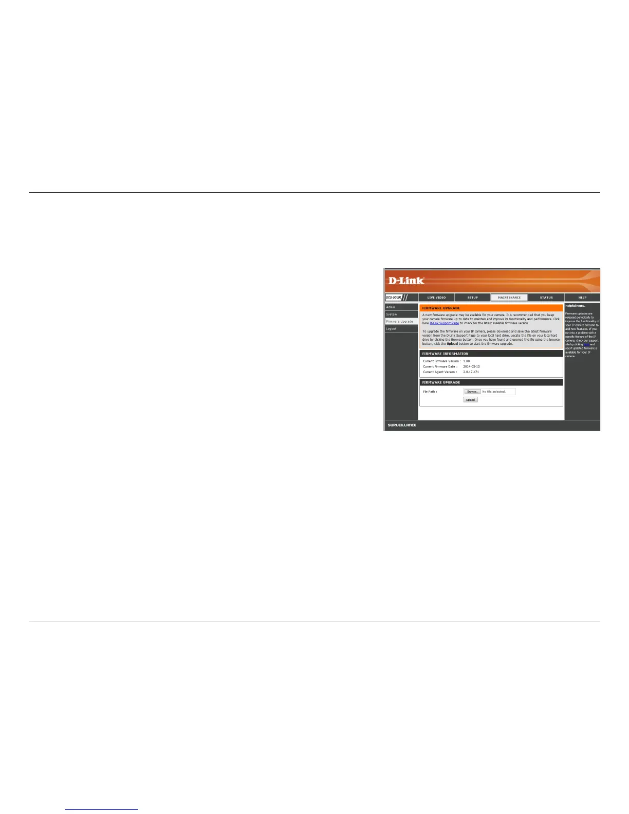 To upgrade the rmware on your DCS-5009L, download the latest rmware from the