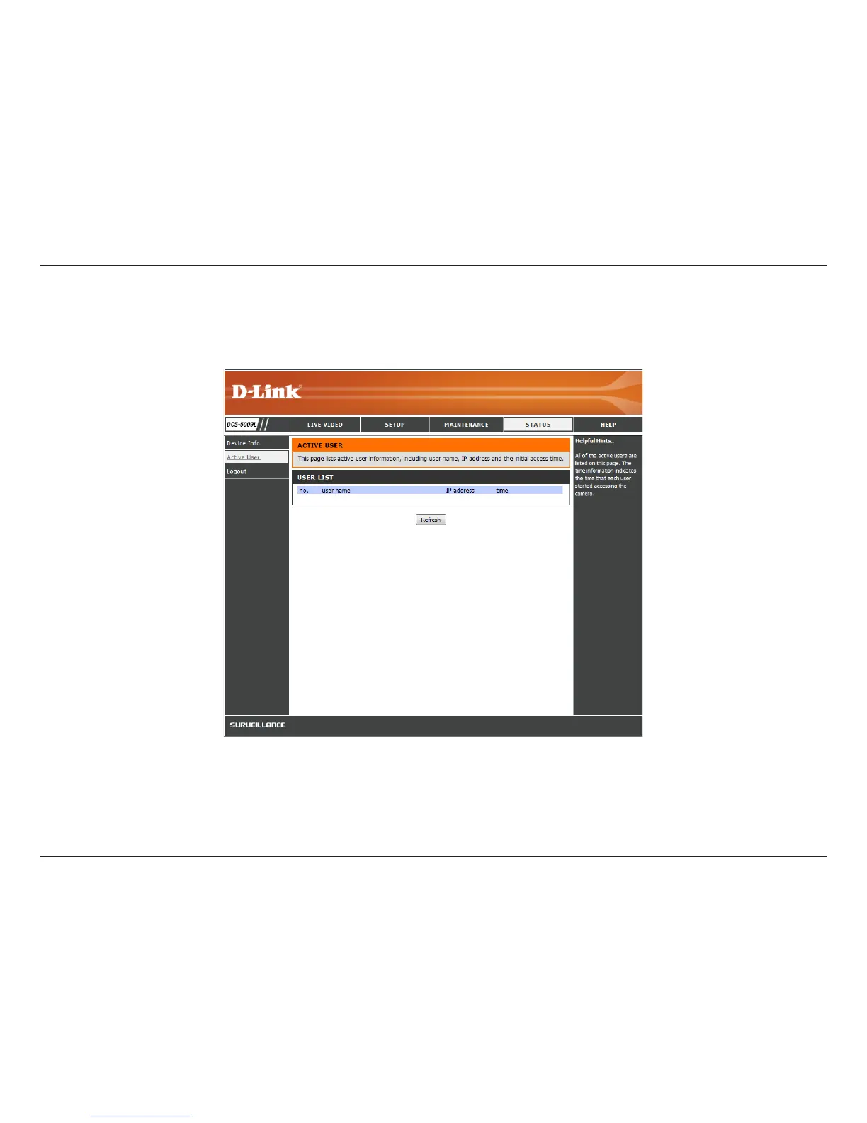 This page lists all the active users’ information including the User Name, IP address, and the Time that camera access began.