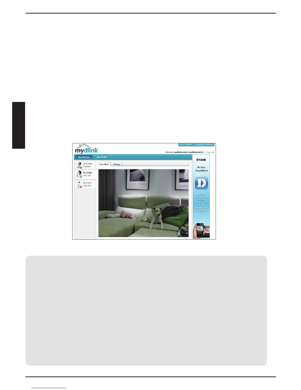 capaz de ver sus puntos de vista en vivo utilizando el sitio web de mydlink. Siga