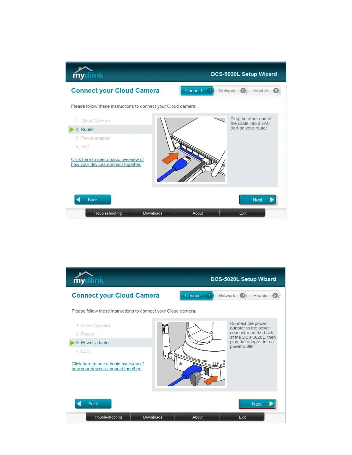 Step 5: Plug the other end of the cable into the LAN port on your router. Click Next button to