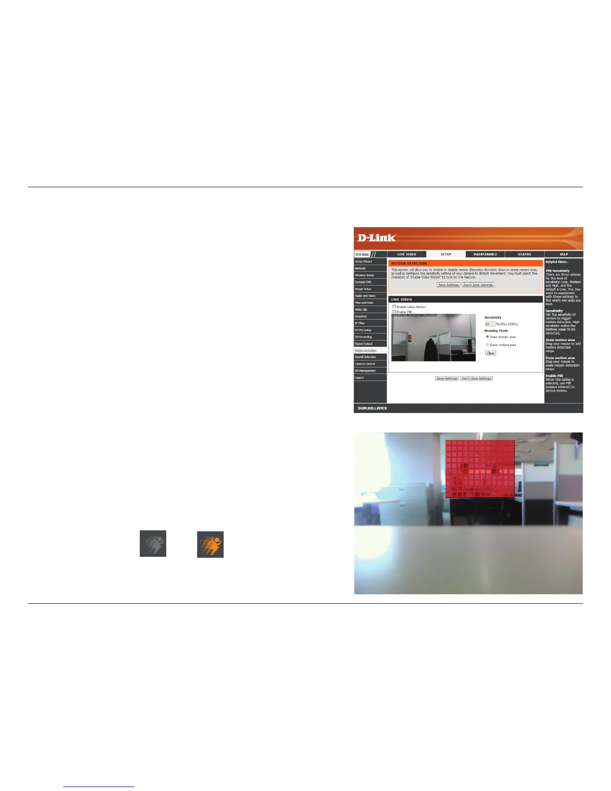 When motion is detected, the LIVE VIDEO page will display a blinking orange motion