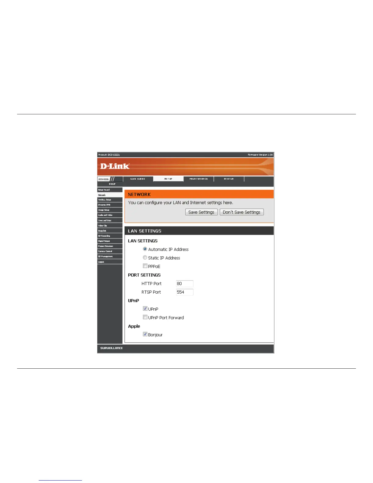 Note: Both the HTTP port and RTSP port are required to be opened for the DCS-5222L.