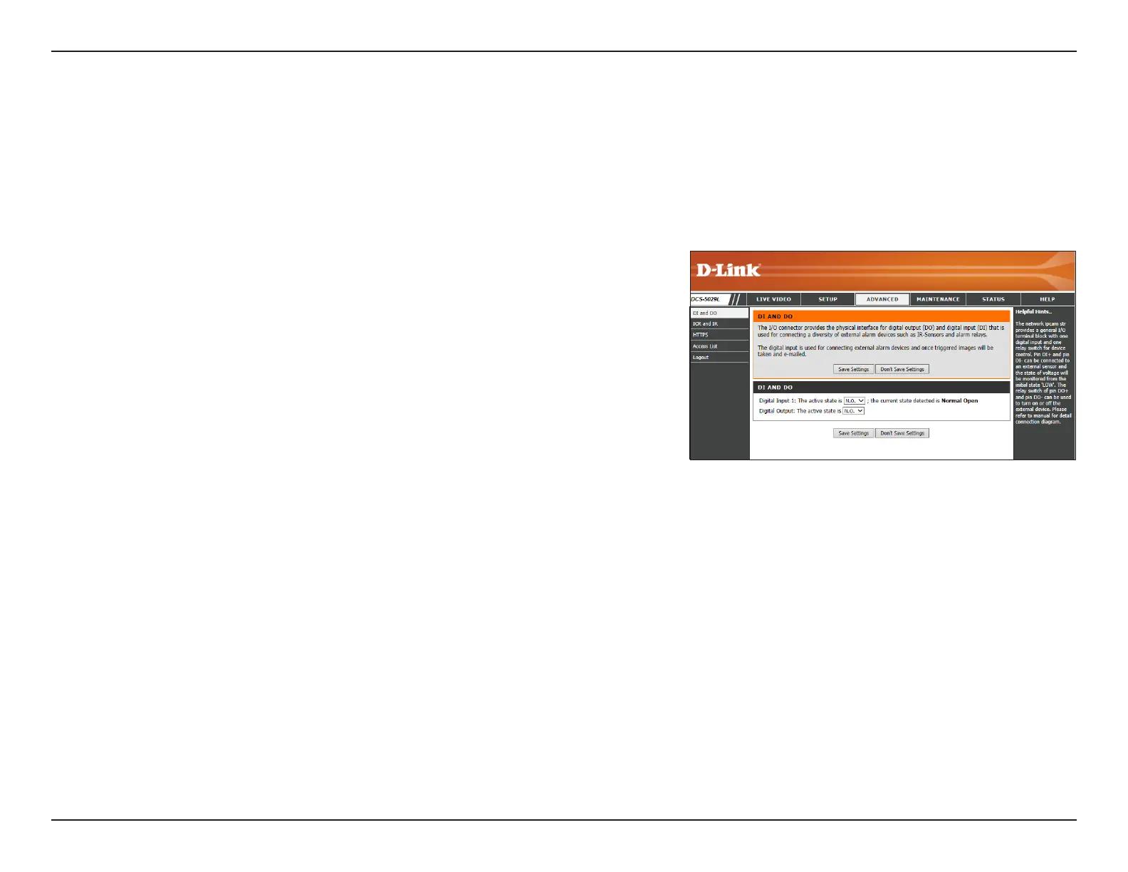 (DO) and digital input (DI) that is used for connecting a variety of external alarm devices such as IR-Sensors and alarm relays. The digital input is used for